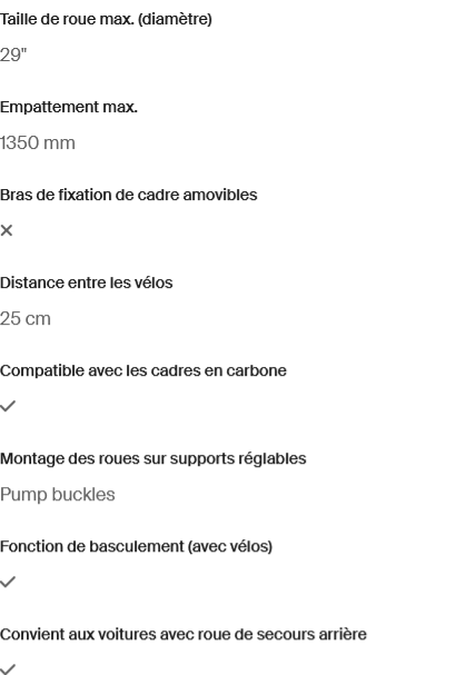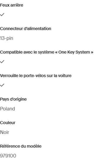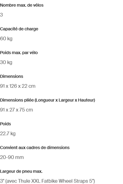 Le porte-vélo Thule Epos s'adapte à tous les types de vélo ; son utilisation est rapide, facile et pratique, nul besoin de forcer pour monter les vélos grâce à un système de fixation des vélos télescopique innovant. Les bras de fixation permettent de fixer le vélo n'importe où sur le cadre ou la roue arrière pour une multitude de possibilités de fixation. Chargez et déchargez jusqu'à 3 vélos dans n'importe quel ordre – tous les types de cadre et de géométries sont pris en charge : vélos électriques, VTT, VTC et vélos avec garde-boues et supports.